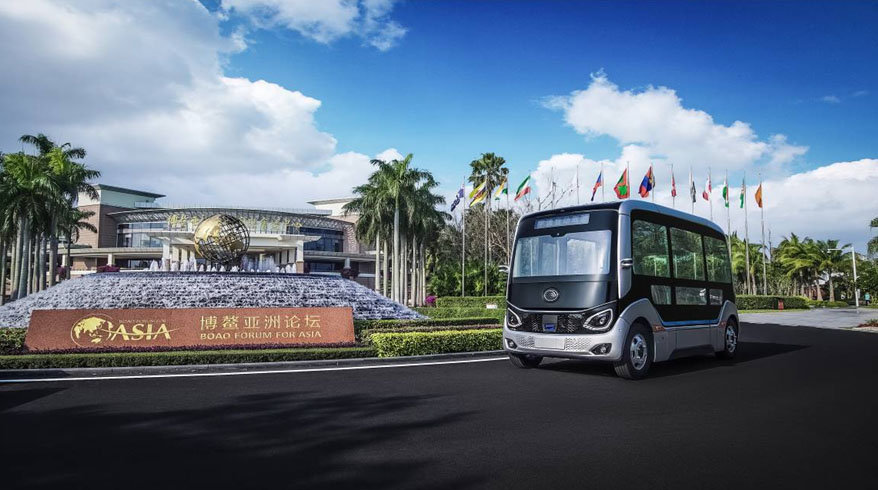 在博鳌亚洲论坛2019年年会期间,由政府组织的智能网联汽车应用示范和试乘试驾体验活动汇聚了全球的目光。其中,宇通最新研发的一款高度自动驾驶巴士,更是吸引了多国参会政要参观体验。