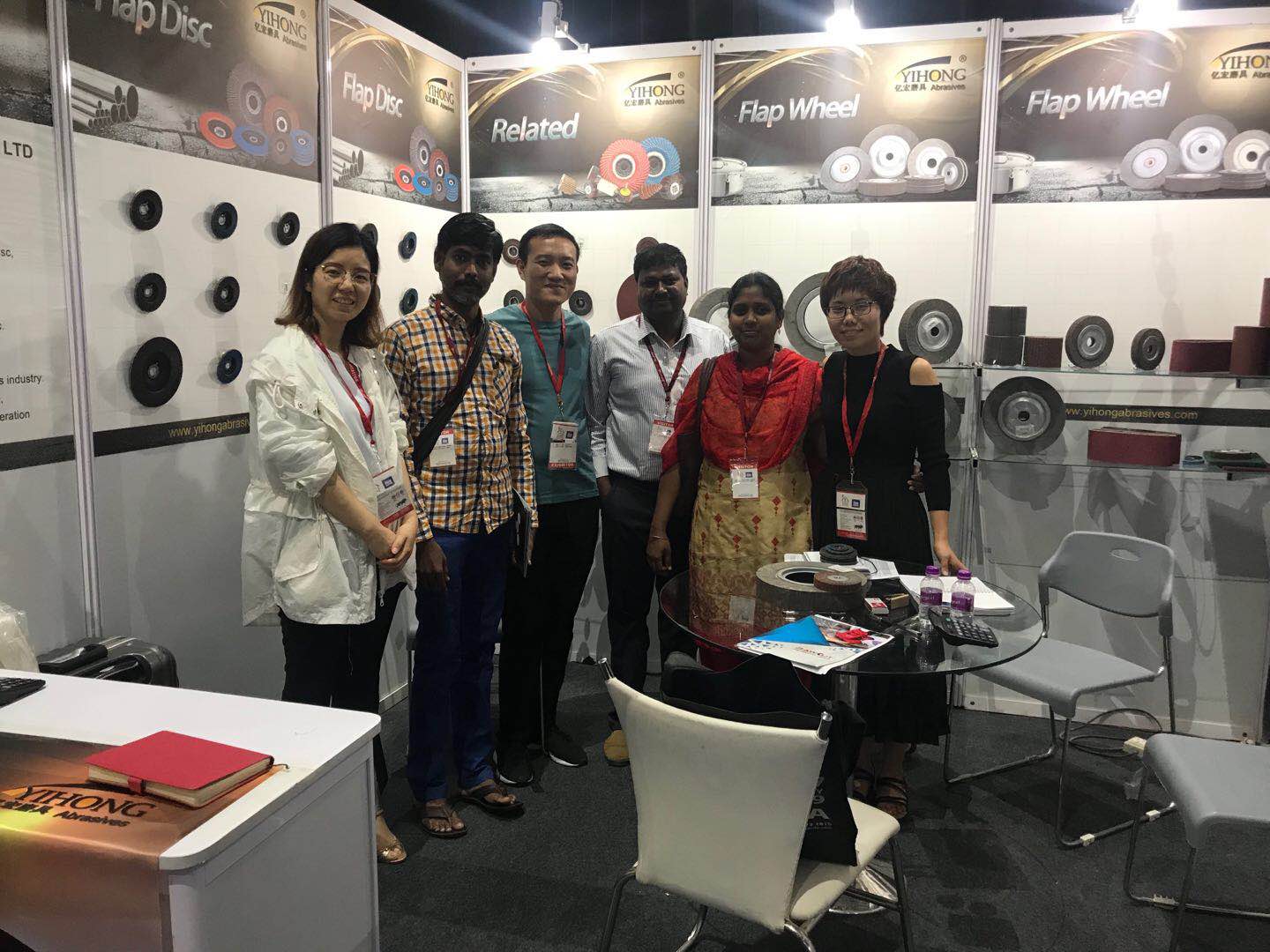 亿宏磨具有限公司于2018年7月28日至30日在印度孟买参加了不锈钢厨具展览会。我们展示了一些主打产品,如飞翼片、磨砂带、玻璃纤维基体、百叶片、千页轮等。展会三天的时间里,客户源源不断地驻足于我们的展台,每天都有不同需求的客户前来咨询下单。展览结束后,亿宏磨具有限公司分别拜访了班加罗尔、钦奈和德里的客户,希望通过这次的展会能让更多的印度客户深入了解我们亿宏磨具的产品,也让我们的质量和服务走进客户心中。
